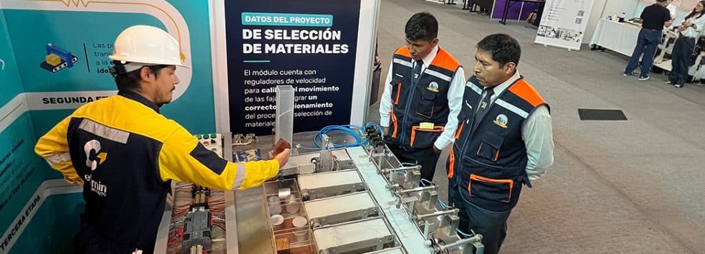 El protagonista de la participación de CETEMIN en esta feria fue un innovador módulo educativo denominado «Selección de Materiales» cuya finalidad es la selección de materiales según el peso y contenido de diversos materiales en un cadena de producción. Este módulo pertenece a la carrera técnica de Mantenimiento Eléctrico e Instrumentación nos permitió mostrar las demandas cambiantes del mercado laboral y la preparación de nuestros estudiantes para enfrentar los desafíos de la industria moderna.